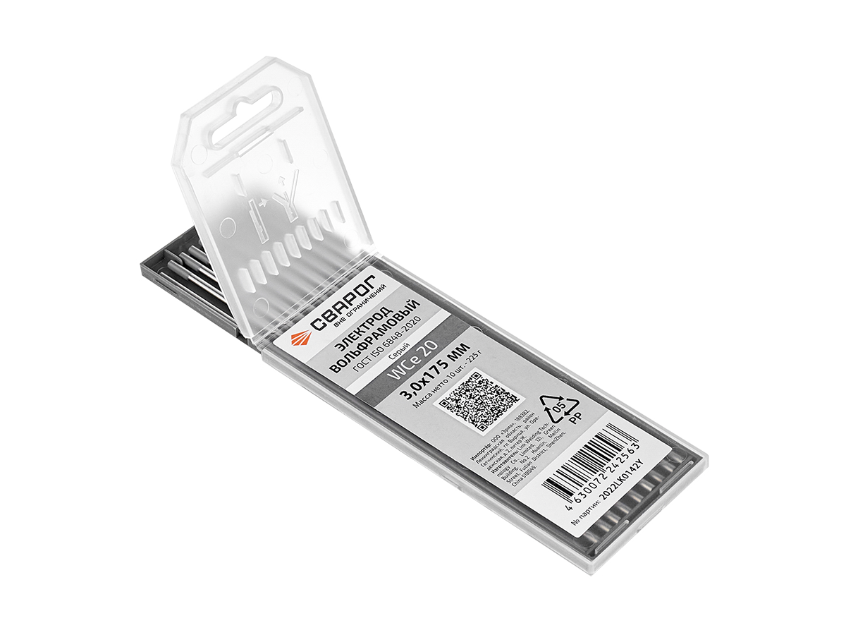 WCe20− вольфрамовый электрод изготовлен с добавление диоксида церия, соответствует требованиям ISO 6848. Продукция не подлежит обязательной аттестации НАКС.