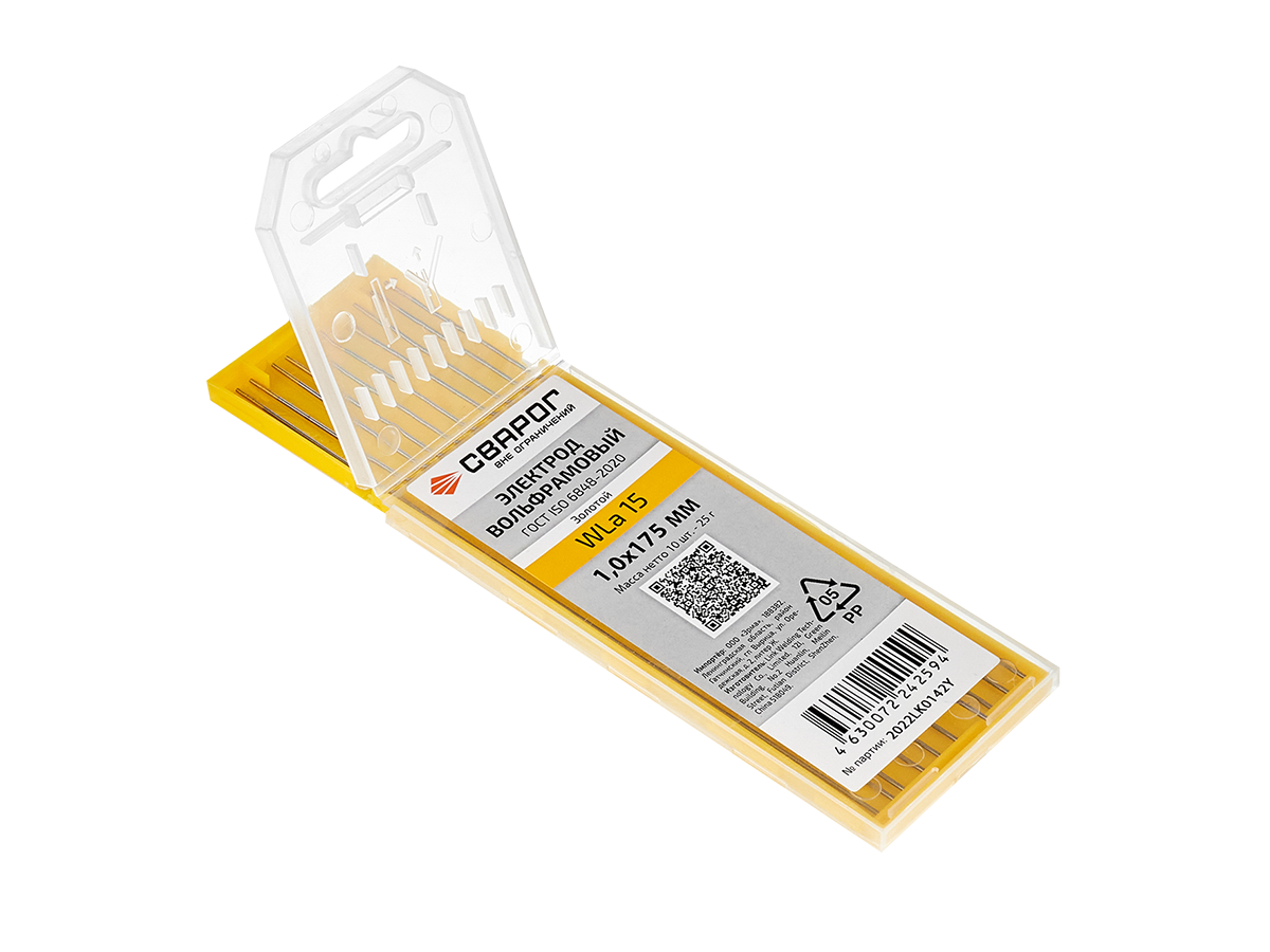 WLa15— вольфрамовый электрод изготовлен с добавление оксида лантана, соответствует требованиям ISO 6848. Продукция не подлежит обязательной аттестации НАКС.