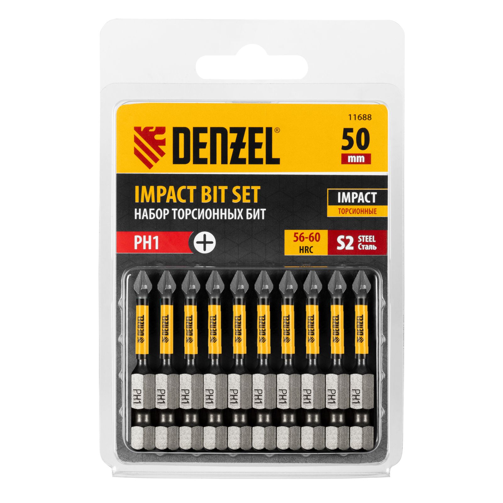 Бита IMPACT, PH1x50 мм, лазерная обработка шлица, сталь S2, 10 шт., Е 6,3 Denzel