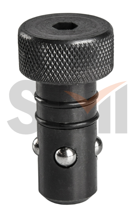 Быстрозажимной болт используется для быстрой и жесткой фиксации изделий на столе. Болт вставляется в отверстие изделия и стола. При закручивании шляпки шток внутри болта выталкивает шарики и фиксирует изделие на столе.