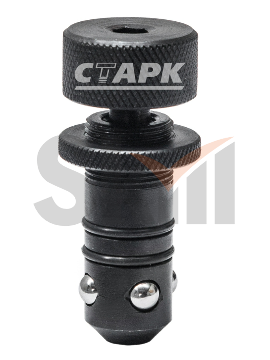 Быстрозажимной болт с регулировкой используется для быстрой и жесткой фиксации изделий на столе. Болт вставляется в отверстия изделия и стола. При закручивании шляпки шток внутри болта выталкивает шарики и фиксирует изделие на столе. Возможна регулировка толщины зажимаемых изделий.