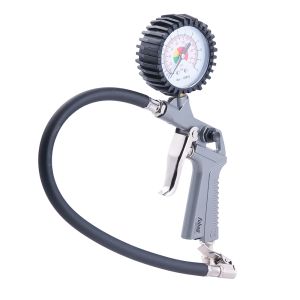 Пневмопистолет для накачки, с манометром. Незаменим в автомастерских, гаражах, на заправках. Оснащен манометром, необходимым для контроля давления, и гибким шлангом для присоединения к штуцеру шины.