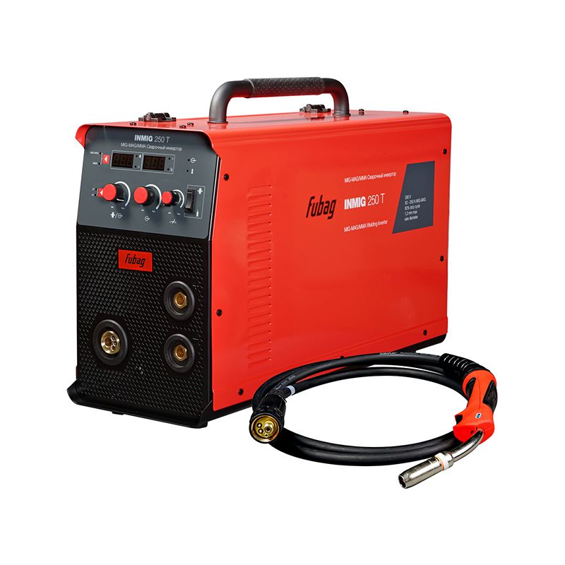 INMIG 250 T - трехфазный компактный инверторный сварочный полуавтомат MIG-MAG сварки с двухроликовым механизмом подачи проволоки. Отличный выбор для выполнения различных сварочных работ в автомастерских, на небольшом производстве или на стройке, когда требуется хорошее качество шва.Сварочный полуавтомат работает в диапазоне сварочного тока 50 - 250 А с проволокой, диаметром от 0.6 до 1,2 мм. Закрытый металлический корпус защищает внутренние элементы, а специальная прозрачная крышка исключает вероятность случайного изменения сварочных параметров во время работы. Интуитивно понятный интерфейс и удобная панель управления позволяет быстро и просто устанавливать такие нужные параметры сварки, как скорость подачи проволоки, напряжение дуги и индуктивность. Цифровая индикация параметров полуавтомата Fubag INMIG 250 T позволяет контролировать и своевременно корректировать параметры сварки.