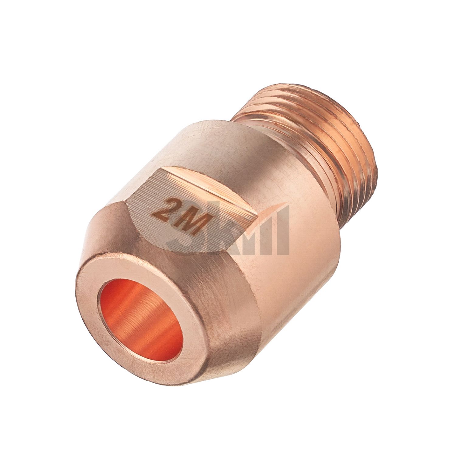 Медный наружный мундштук для пропановых инжекторных металлургических резаков Р-502Р. Маркировка мундштука №2М. Толщина разрезаемого металла зависит от установленного внутреннего мундштука. Предназначен только для внутренних мундштуков №2М.