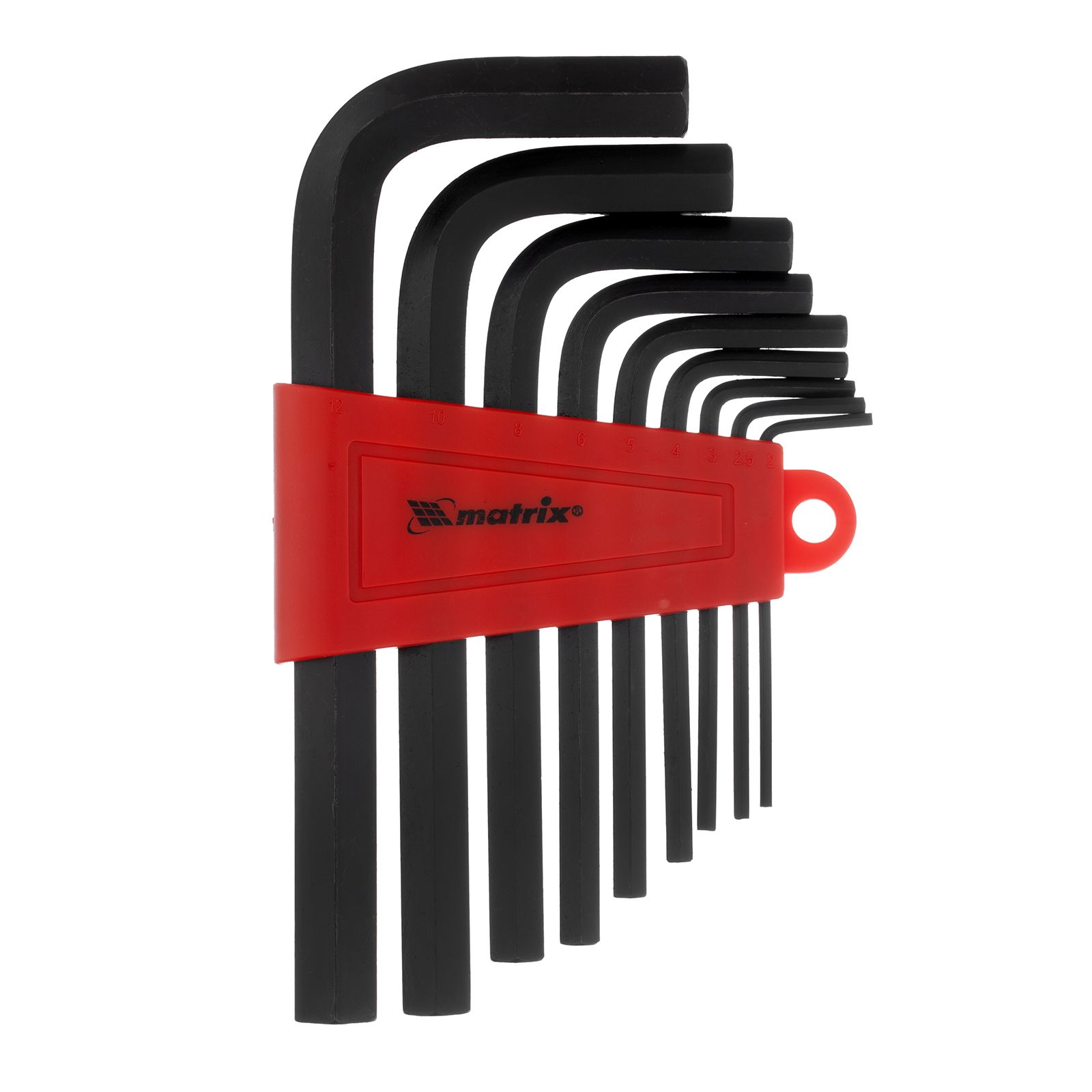 Набор ключей имбусовых HEX, 2,0–12 мм, CrV, 9 шт., короткие, оксидированные// Matrix