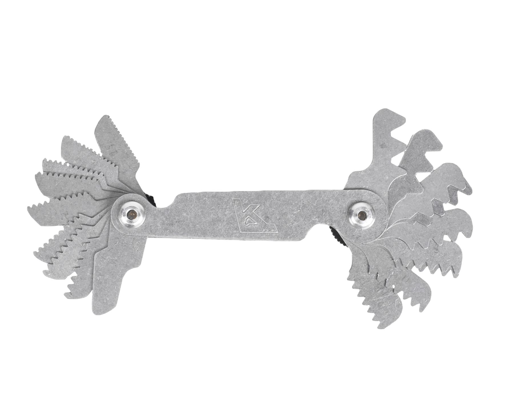 Набор шаблонов резьбовых №1 М60 КЛБ – это контрольно-измерительный инструмент, необходимый при слесарных и токарных работах. Применяется для определения номинального шага метрических резьб (60°). Представляет собой 20 закрепленные в обоймы тонких стальных пластин толщиной 1 мм с точными зубьями резьбы. Шаг резьбы шаблонов: 0.4; 0.45; 0.5; 0.6; 0.7; 0.75; 0.8; 1.0; 1.25; 1.5; 1.75; 2.0; 2.5; 3.0; 3.5; 4.0; 4.5; 5.0; 5.5; 6.0 мм. Размер 75х15х15 мм. Предельные отклонения шага метрической резьбы, мм, при номинальном шаге, мм 0,40-1,25; ± 0,01 мм, 1,50-6,00 - ± 0,015 мм. Набор упакован в мягкий футляр для удобства хранения и транспортировки.