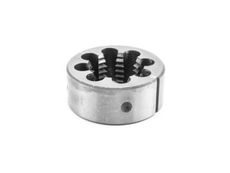 Плашка метрическая М, диаметр резьбы 42 мм, шаг резьбы 4,5 мм, класс точности 6h, диаметр плашки 75 мм. Предназначена для нарезания резьбы за один проход, а также ее калибровки. Может использоваться как для ручной, так и для машинной обработки.