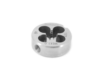 Плашка метрическая М, диаметр резьбы 6 мм, шаг резьбы 1 мм, класс точности 6h, диаметр плашки 20 мм. Предназначена для нарезания резьбы за один проход, а также ее калибровки. Может использоваться как для ручной, так и для машинной обработки.