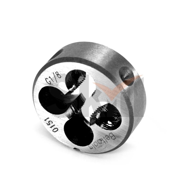 Плашка трубная с диаметром резьбы 1/8 дюйма, шаг резьбы - 28 ниток на дюйм. Диаметр плашки составляет 30 мм.Тип нарезаемой резьбы - трубная. Предназначена для нарезания наружной резьбы на трубах различного диаметра, а также на шпильках, стержнях, прутках, цилиндрах.