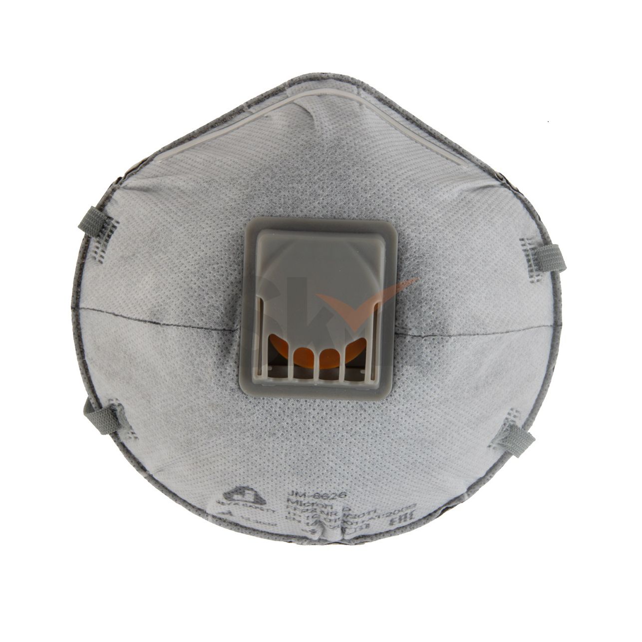 JETA SAFETY JM-8626 Micron — одноразовый противоаэрозольный чашеобразный респиратор с угольным слоем и клапаном. Защищает органы дыхания от неприятных запахов, пылевых частиц при резке стекла, бетона, железа, дерева, при работе со штукатуркой, стеклянным и минеральным волокном, а также эффективно защищает при выполнении строительных и сварочных работ. Препятствует проникновению пыльцы, частиц шерсти, бытовой пыли, угольной пыли, аэрозольных частиц жидкостей. Используется в сфере промышленного клининга, строительства, c/х, добычи полезных ископаемых. Класс защиты FFP2 NR D (ГОСТ Р 12.4.191-99 ССБТ).