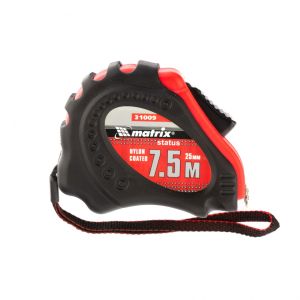 Рулетка Status autostop magnet+, 7,5 м х 25 мм, обрезиненная, нейлоновое покрытие// Matrix