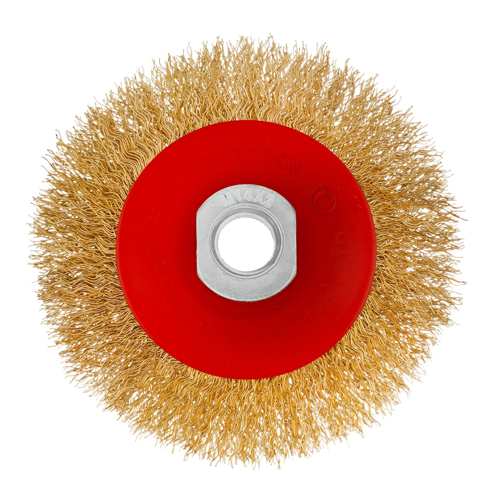 Щетка для УШМ, 100 мм, М14, "тарелка", латунированная витая проволока Matrix