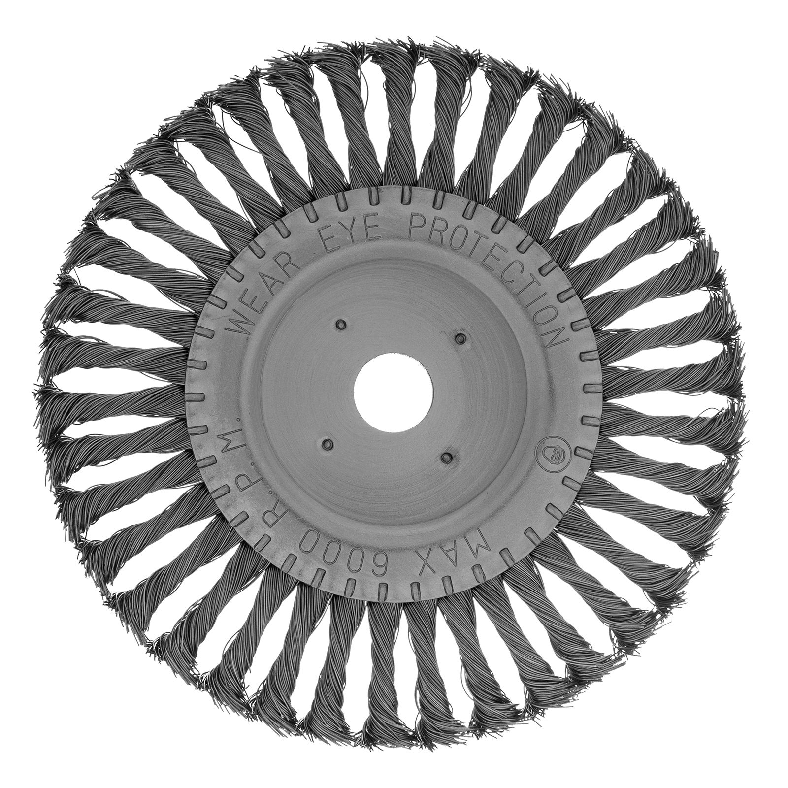 Плоская щетка Matrix 74638 диаметром 200 мм и посадкой 22,2 мм, с щетиной из крученой проволоки толщиной 0,5 мм, устанавливается на вал УШМ, поддерживающей скорость вращения не более 6000 об/мин. Эффективно удаляет загрязнения, толстый слой ржавчины и лакокрасочных материалов с поверхностей, поэтому используется для проведения грубой (черновой) обработки. Плоской щеткой удобно очищать труднодоступные места, в том числе углы и изгибы.