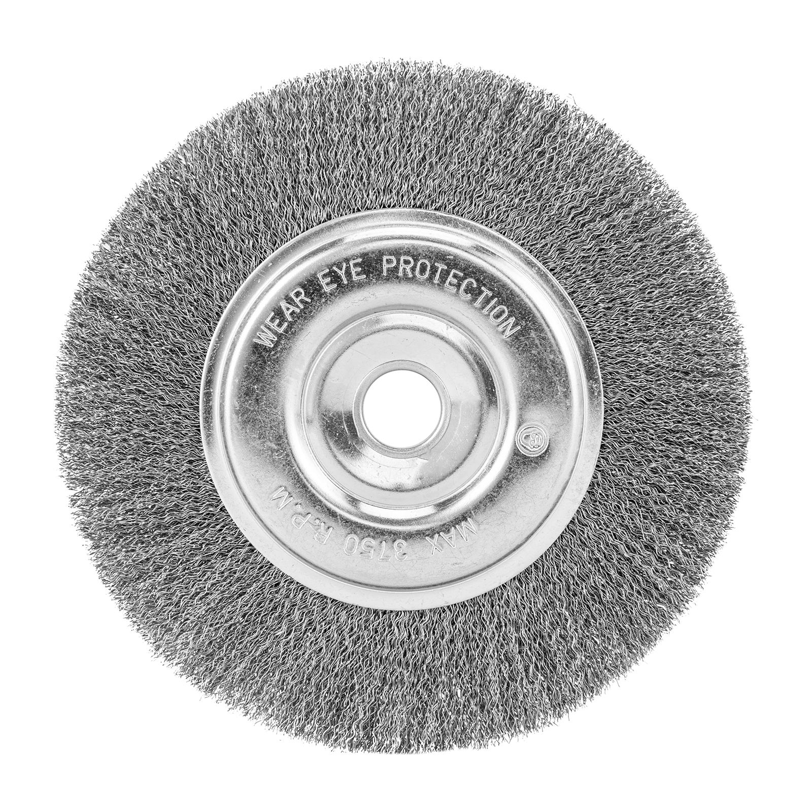 Плоская щетка для УШМ Сибртех 746687 диаметром 200 мм, с посадкой 22,2 мм, с щетиной из витой проволоки, предназначена для щадящей очистки твердых поверхностей от загрязнений, ржавчины, остатков краски и других покрытий. Щетина из проволоки толщиной 0,3 мм постепенно снимает тонкий слой материала. Плоская форма щетки делает ее оптимальным инструментом для обработки внутренних углов, пазов, изгибов и малодоступных мест. Щетка позволяет придать шероховатость или подчеркнуть структуру материала. Насадка устанавливается на фланец углошлифовальной машины и подходит для продолжительной работы, не требующей частой смены оснасток. Рекомендуемая максимальная скорость вращения составляет 3750 об/мин. Для обеспечения безопасности оператора следует использовать средства индивидуальной защиты. Щетка применяется в строительной, производственной сфере, а также в быту.