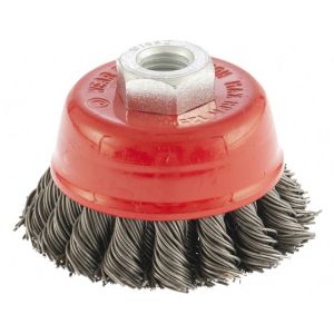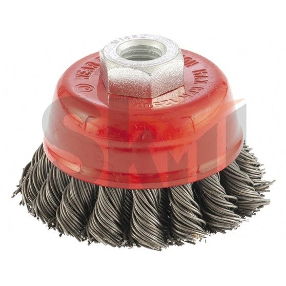 Двухрядная щетка Matrix «Чашка» 74686 диаметром 75 мм, с щетиной из крученой проволоки толщиной 0,8 мм, устанавливается на вал углошлифовальной машины с помощью гайки М14. Рекомендованная максимальная скорость вращения — до 12500 об/мин. Оснастка оптимальна для грубой (черновой) обработки: снятия старого слоя лакокрасочного покрытия и ржавчины, удаления загрязнений, зачистки сварных швов. Эффективно справляется с зачисткой больших поверхностей, подходит для выполнения работ повышенной сложности.