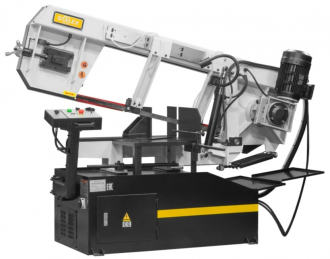 В рабочей зоне резания полотно точно ведется двумя направляющими головками с твёрдосплавными пластинами. Станок имеет неподвижные тиски и поворотный механизм рамы, для пиления под углом необходимо изменить положение рамы относительно неподвижных тисков. Высота полотна 34мм позволяет пилить c высокой точностью и параллельностью полые и профильные заготовки под различными углами.