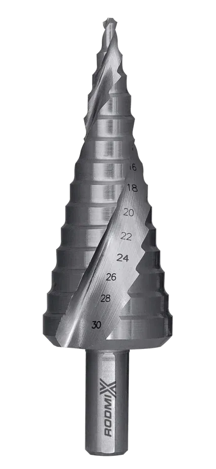 Ступенчатое сверло со спиральной канавкой HSS M2, 12 ступеней, 4-26 мм