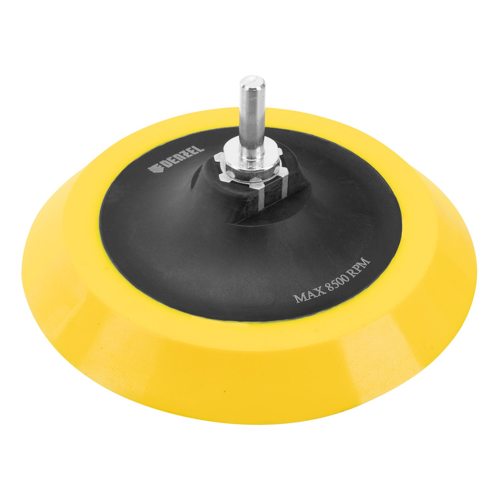 Тарелка опорная для дрели и УШМ с липучкой, 150 мм, мягкая, с адаптером c М14 на d8 Denzel