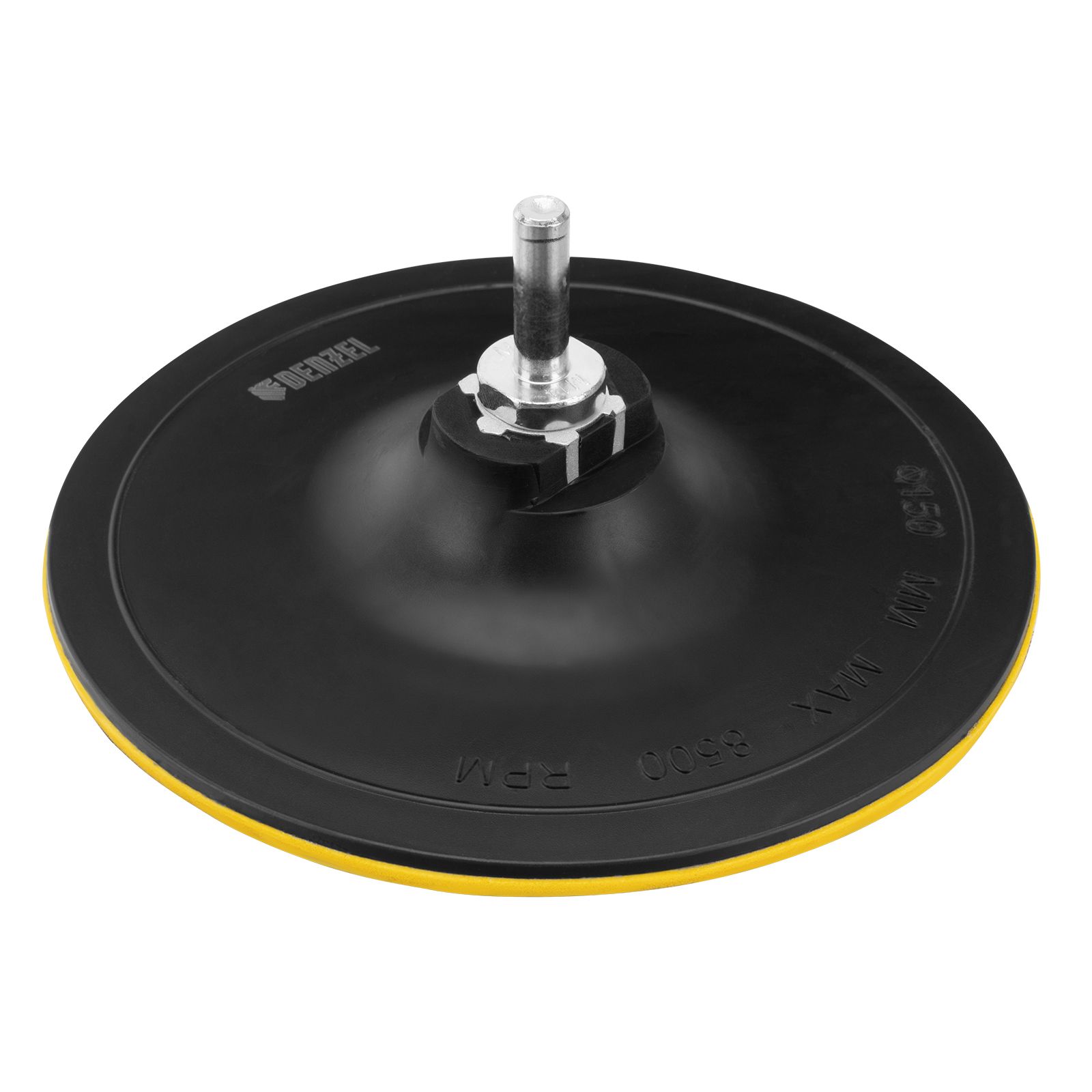 Тарелка опорная для дрели и УШМ с липучкой, 150 мм, твердая, с адаптером c М14 на d8 Denzel