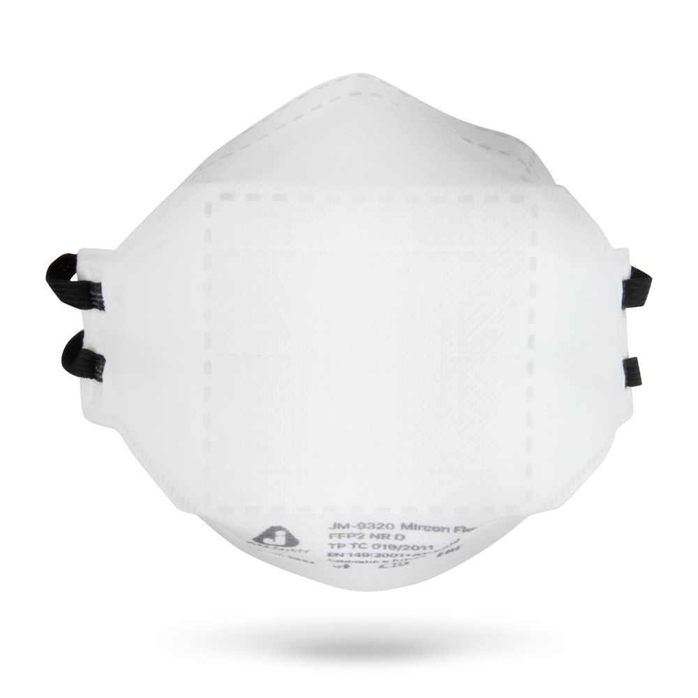 JETA SAFETY JM-9320 Micron Flex — трехпанельный противоаэрозольный респиратор без клапана увеличенного уровня защиты эффективно препятствует проникновению в легкие частиц стеклянной и бетонной пыли, металлической стружки, древесной и бытовой пыли. Позволяет без риска для здоровья работать с минеральным волокном, шерстью, угольной пылью и жидкими аэрозолями и масляным туманом. Трехпанельная конструкция позволяет складывать респиратор и хранить его без риска повредить материал и форму изделия. Резинки оголовья сохраняют эластичность после многократных циклов снятия и надевания респиратора.